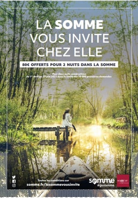 Pour tout séjour de 2 nuits minimum (et dans la limite de 30 nuitées maximum) dans la Somme effectué entre le 1er avril et le 30 juin 2021 dans la limite des 10 000 premières demandes